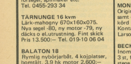 | 1978-1982 | T-u 2 Propp Epost från Patrik.Båten hette på min tid "Propp". Jag kappseglade på Hjälmaren med blandat resultat. Båten utrustade jag med ny stor, fock och Genua. Spinnakern var en begagnad från Temperatur har jag för mig. Lycka till med registret Seglarhälsningar Patrik |