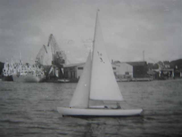 | 1956-1957 | Bilden ( misslyckade ) är tagen strax innan man kommer till Henån från Uddevallahållet. Jag tog med bilden för den visar att T-u 3 hade ett bomtält med lattor som stöd över bommen. |