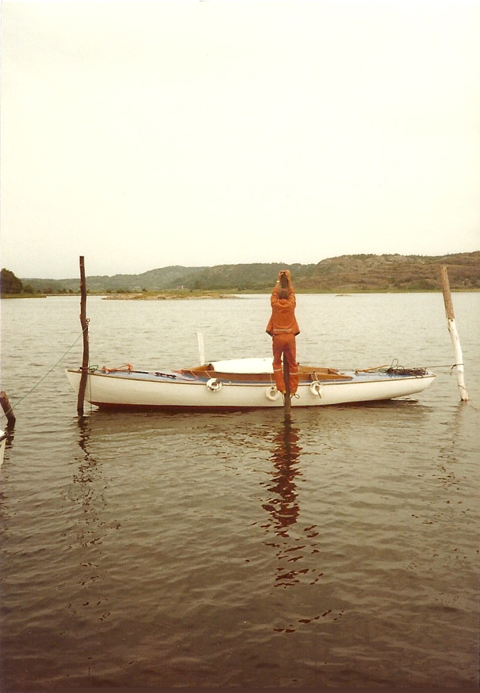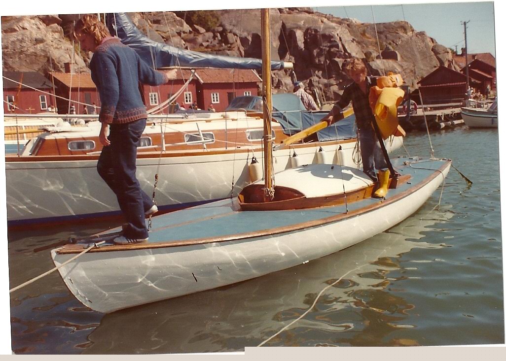![]() Den här bilden tagen någon gång 1978/79 i hamnen på Stora Kornö. Det är jag, Jens Strömberg, i aktern och Kerstin Danielsson, gift med den senare ägaren Sven-Arne Olsson. |