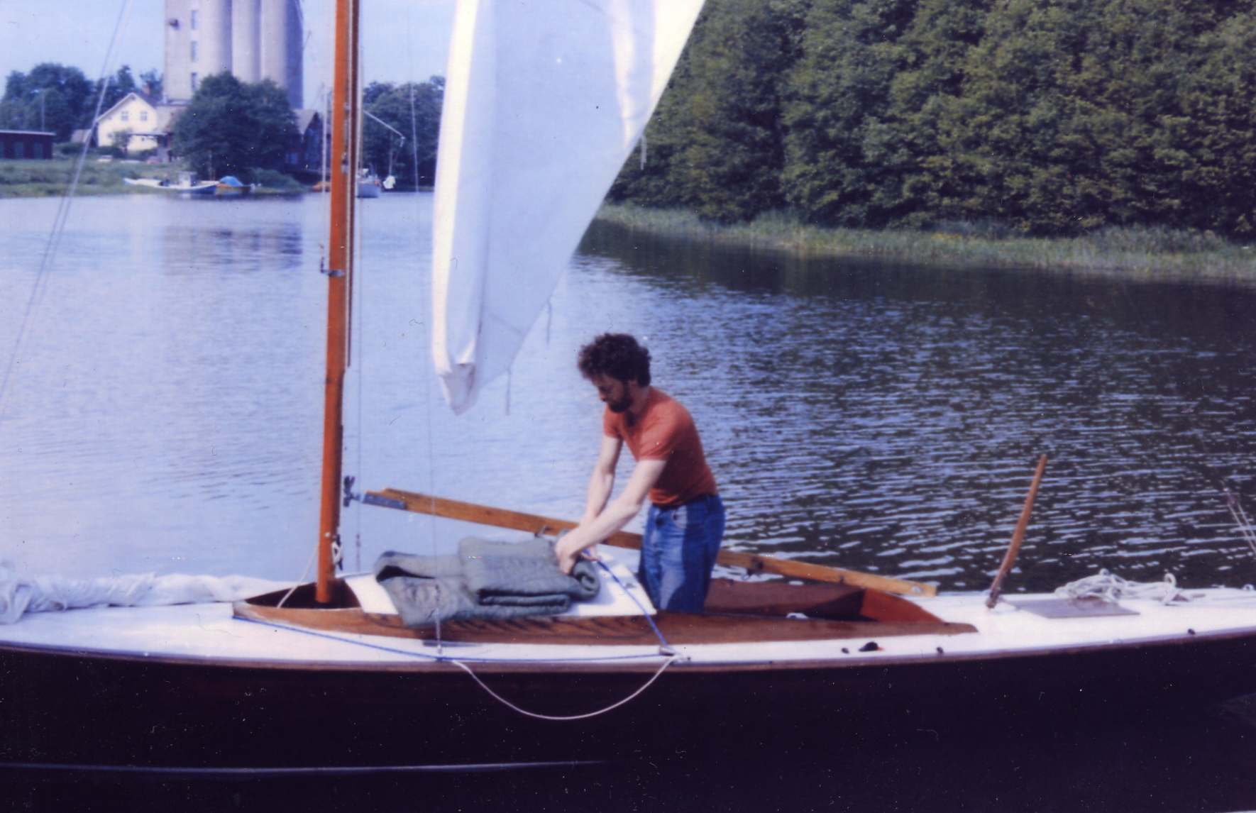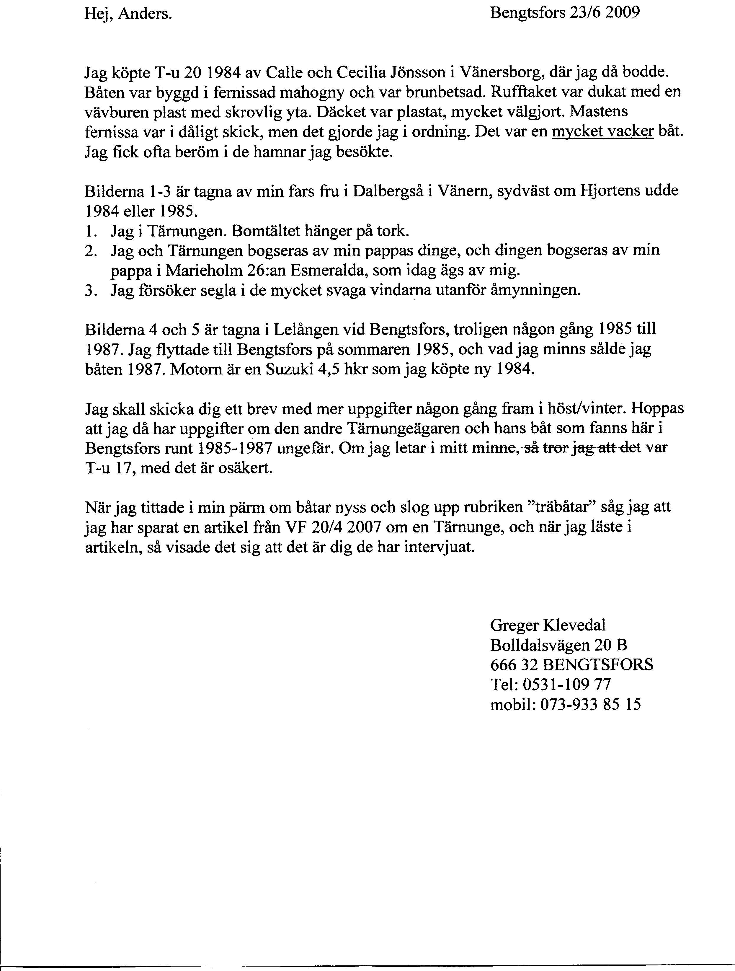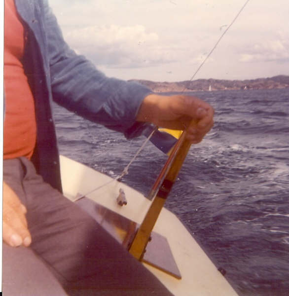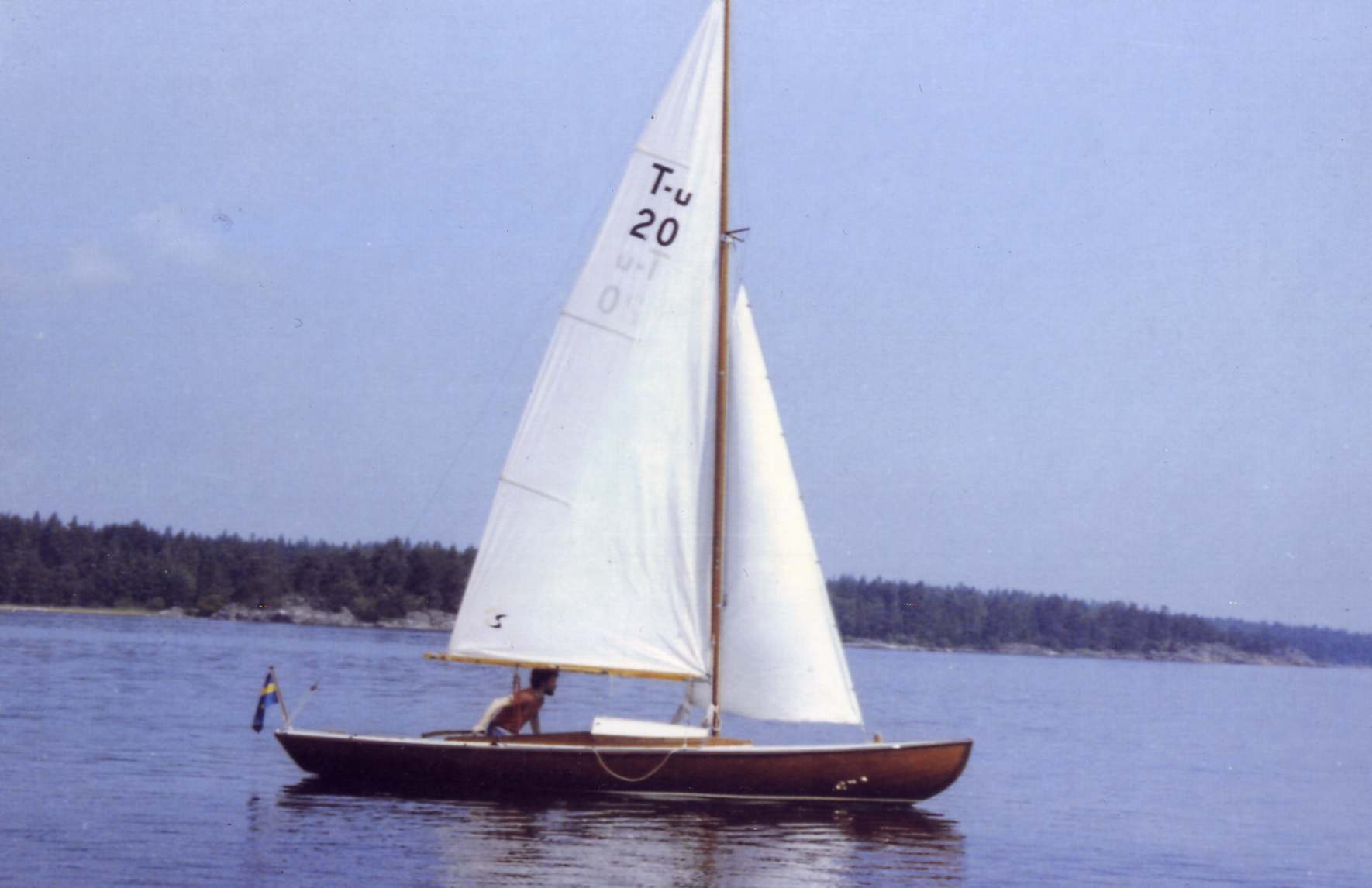 farfar ritade Tärnungen. Här seglar Lars, som var son till Gösta Svensson ,som kan ha ägt rum i Fiskebäckskil. Repen är rena och allt annat är blankt. Kanske T-u 20 är byggd av Gösta Svensson själv.